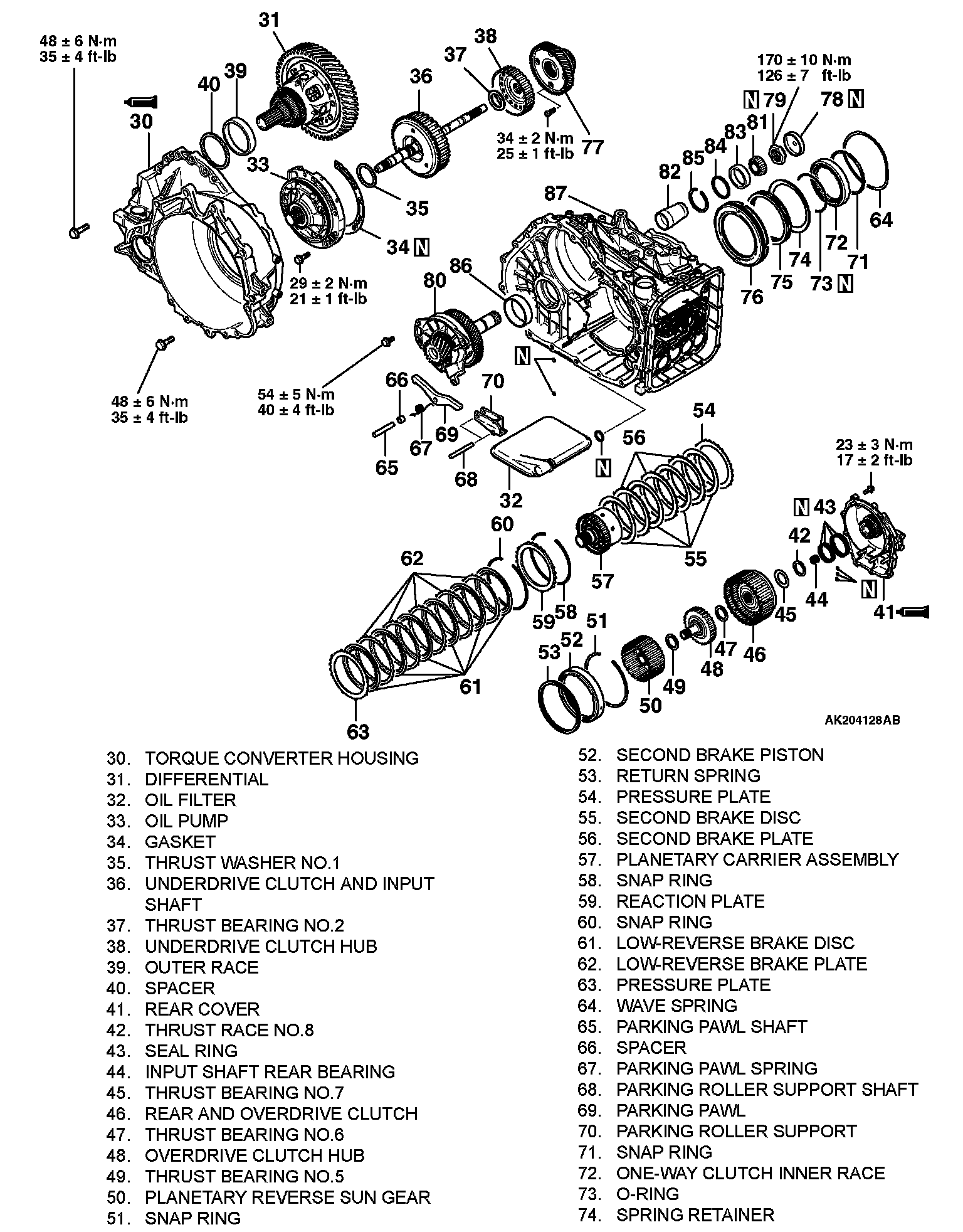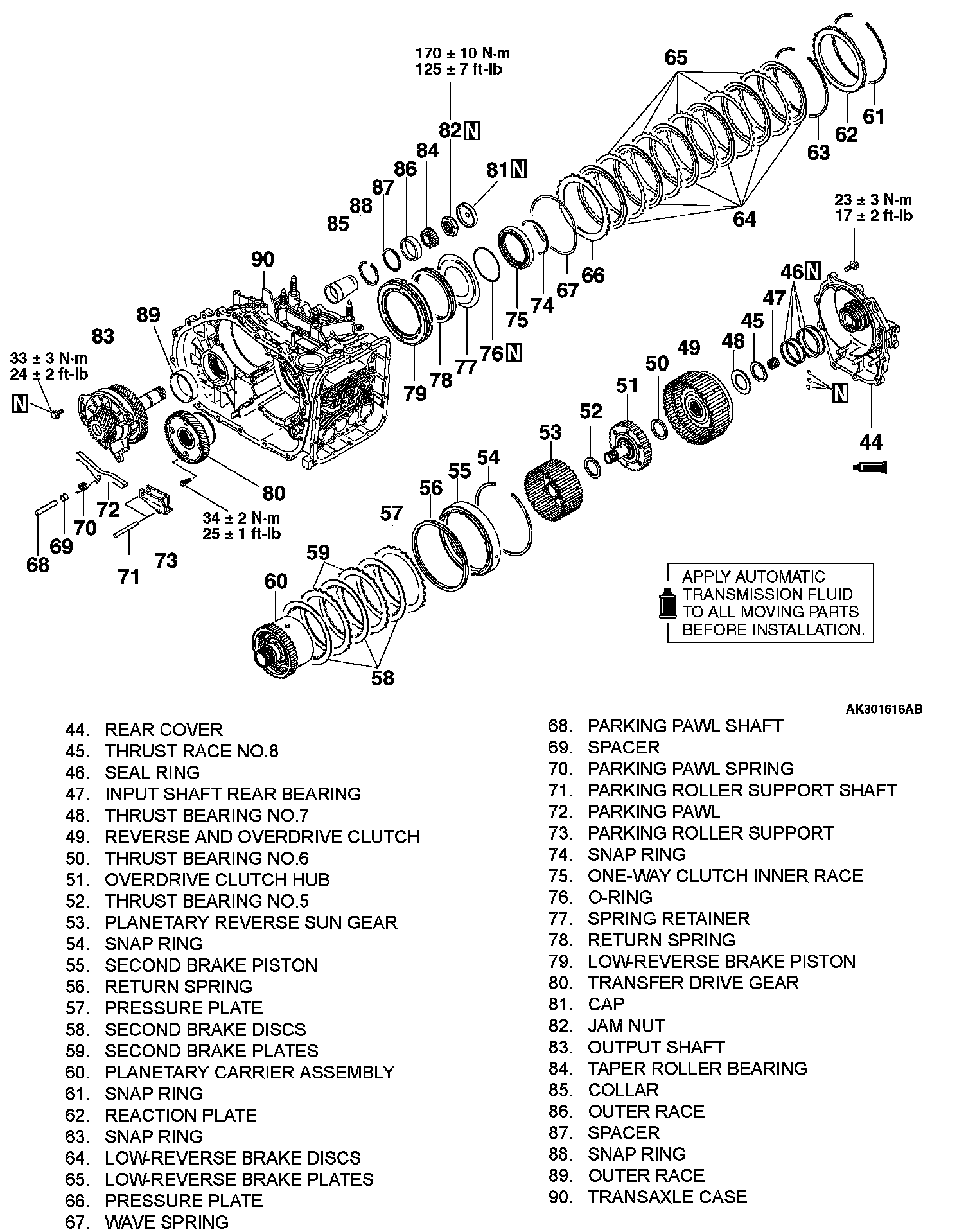 ^ Clutch discs, plastic thrust plates and rubber parts should be cleaned with Automatic Transmission Fluid (ATF).