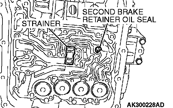 16. Remove the strainer and the second brake retainer oil seal.
