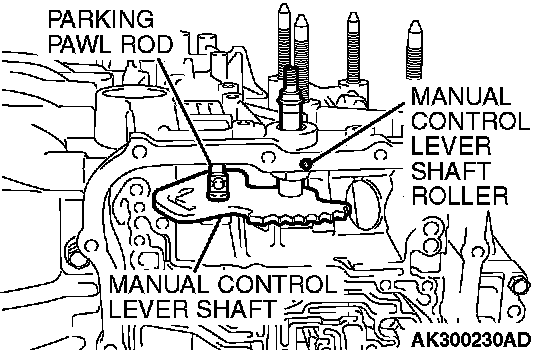 19. Remove the manual control lever shaft and the parking pawl rod.