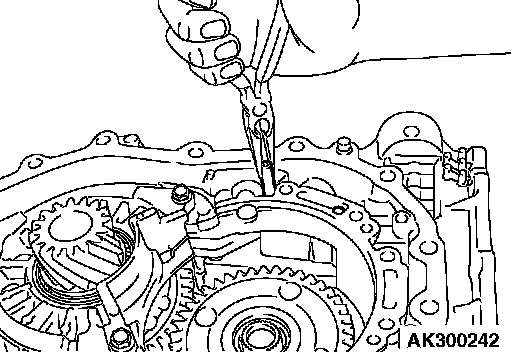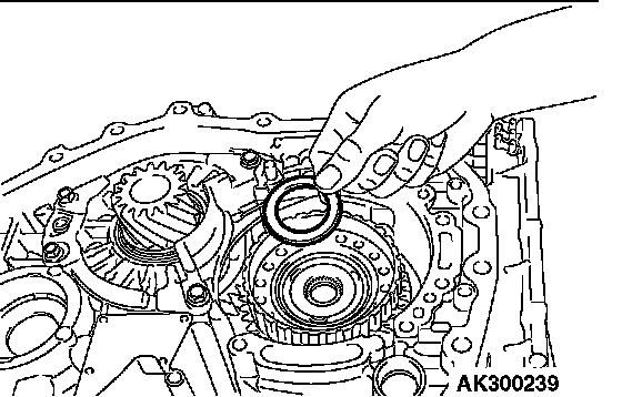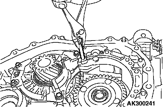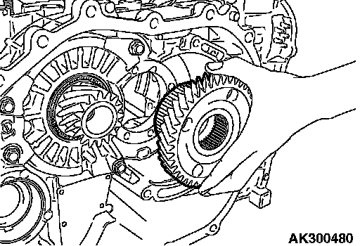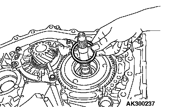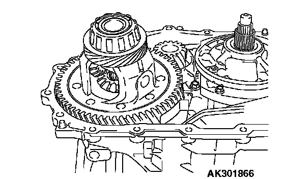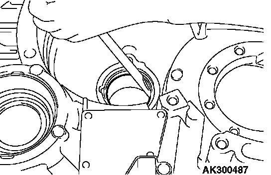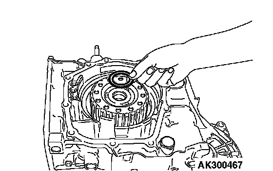 21. Remove the differential bearing outer race and spacer from the torque converter housing.