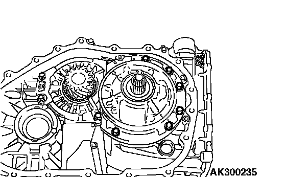 54. Remove the transfer drive gear bearing mounting bolts (three or four pieces). Then, turn the gear 1/8 turn (45 degrees) and remove the remaining bolts (three or four).