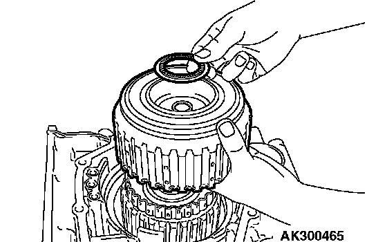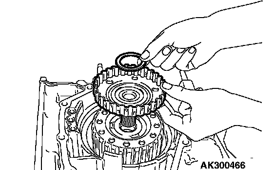 4. Remove the one-way clutch inner race, O-ring, spring retainer, return spring and low-reverse brake piston.