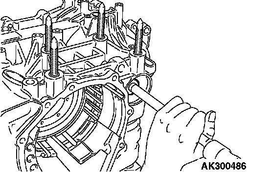 CAUTION: Make sure that the manual control lever and the park/neutral position switch are removed. See step 8. Do not remove the bolts (four pieces) shown in the illustration.