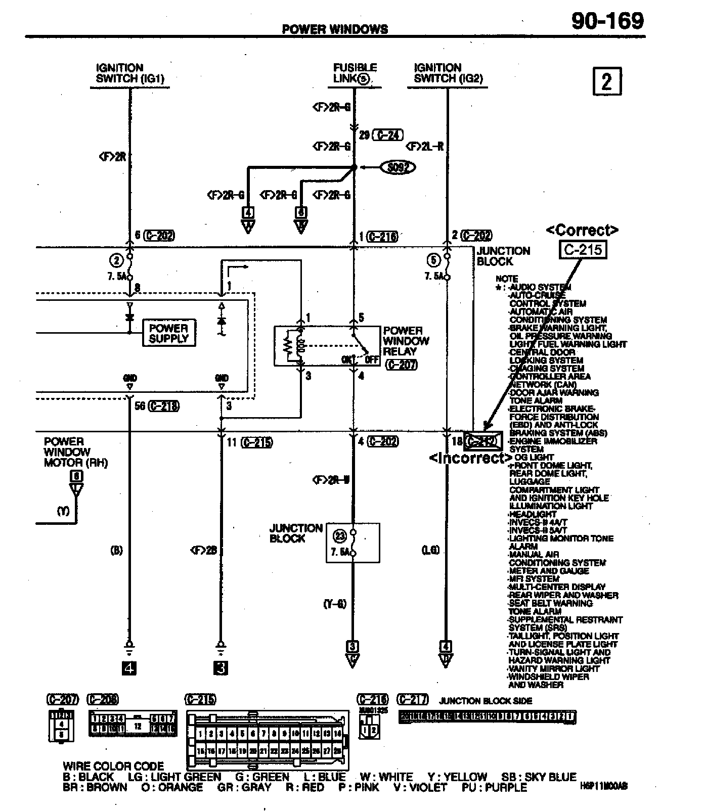 The circuit diagrams for power windows and sunroof are incorrectly shown in the affected service manual pages. This bulletin contains corrected circuit diagrams.