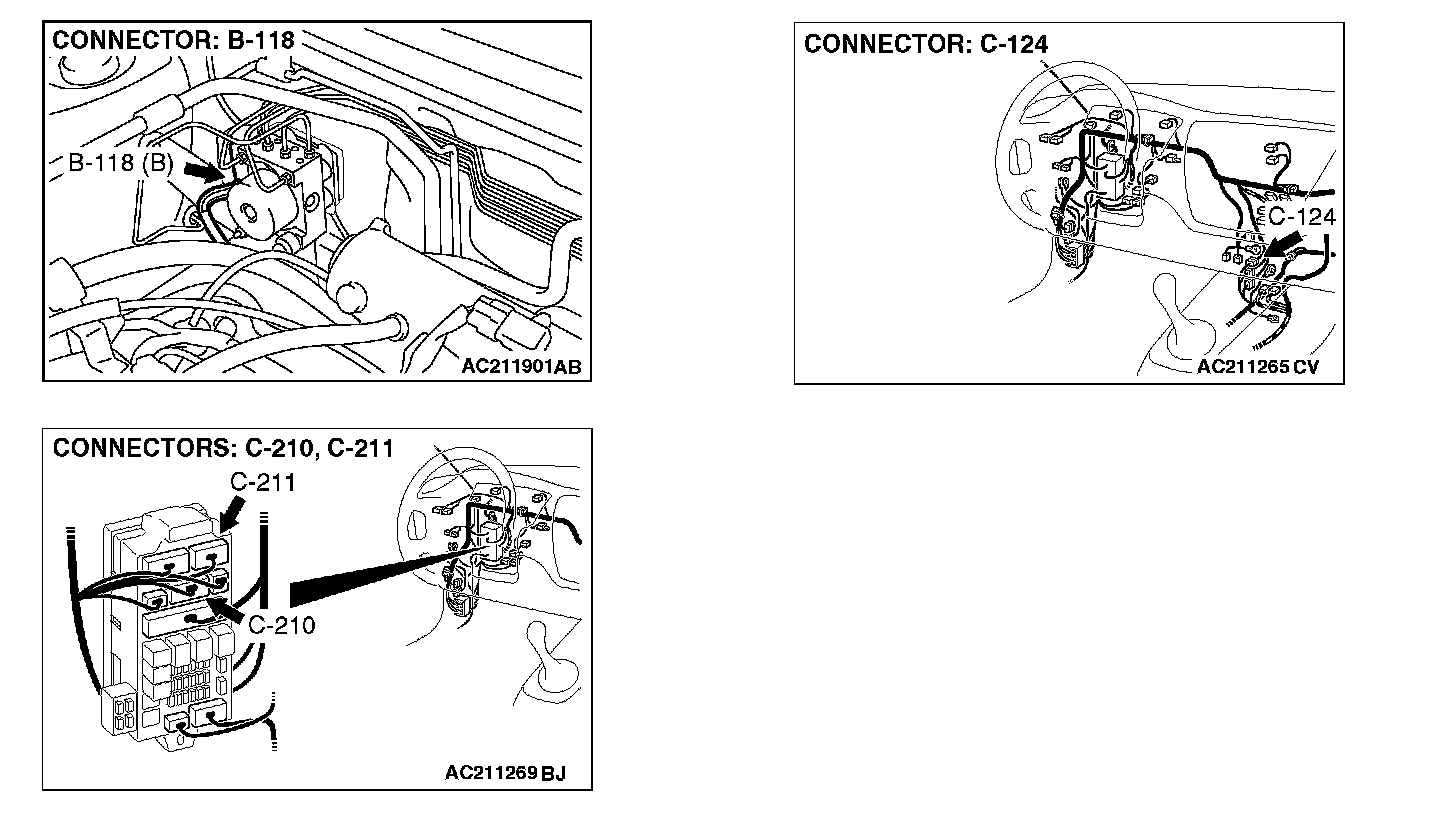 ^ Junction block connectors C-210, C-211 Check the connectors for loose, corroded or damaged terminals, or terminals pushed back in the connector.