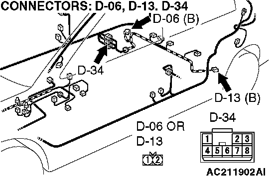 STEP 4. Check ABS sensor connector A-03, A-27, D-06, D-13, intermediate connector A-29, C-111, C-113, C-122, D-34 and AWD-ECU connector C-139 for loose, corroded or damaged terminals, or terminals pushed back in the connector.