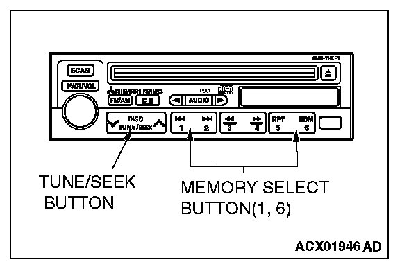 4. If a button other than the memory select "6" button and "EJECT" button is pressed, or the ignition switch is turned to "LOCK" (OFF) position, you will exit from the speaker test mode.