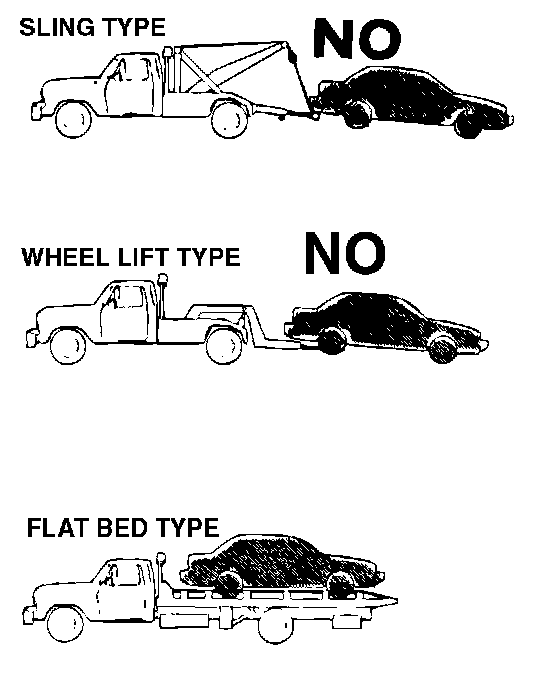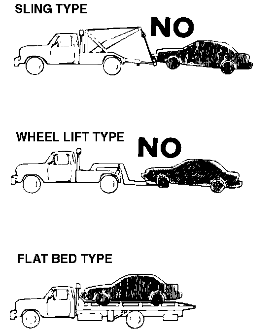 - If this vehicle is towed, use flat bed equipment