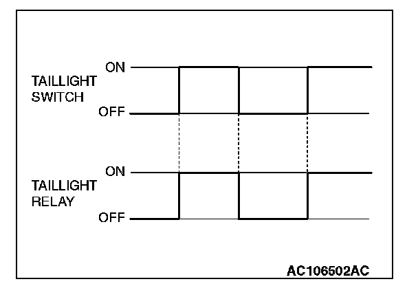 NOTE: This item only considers the taillight light up function and does not take into consideration the other functions. In actual driving, the taillights may be turned off due to the headlight automatic shut-down function. For the details of the headlight automatic shut-down function, refer to its Section.
