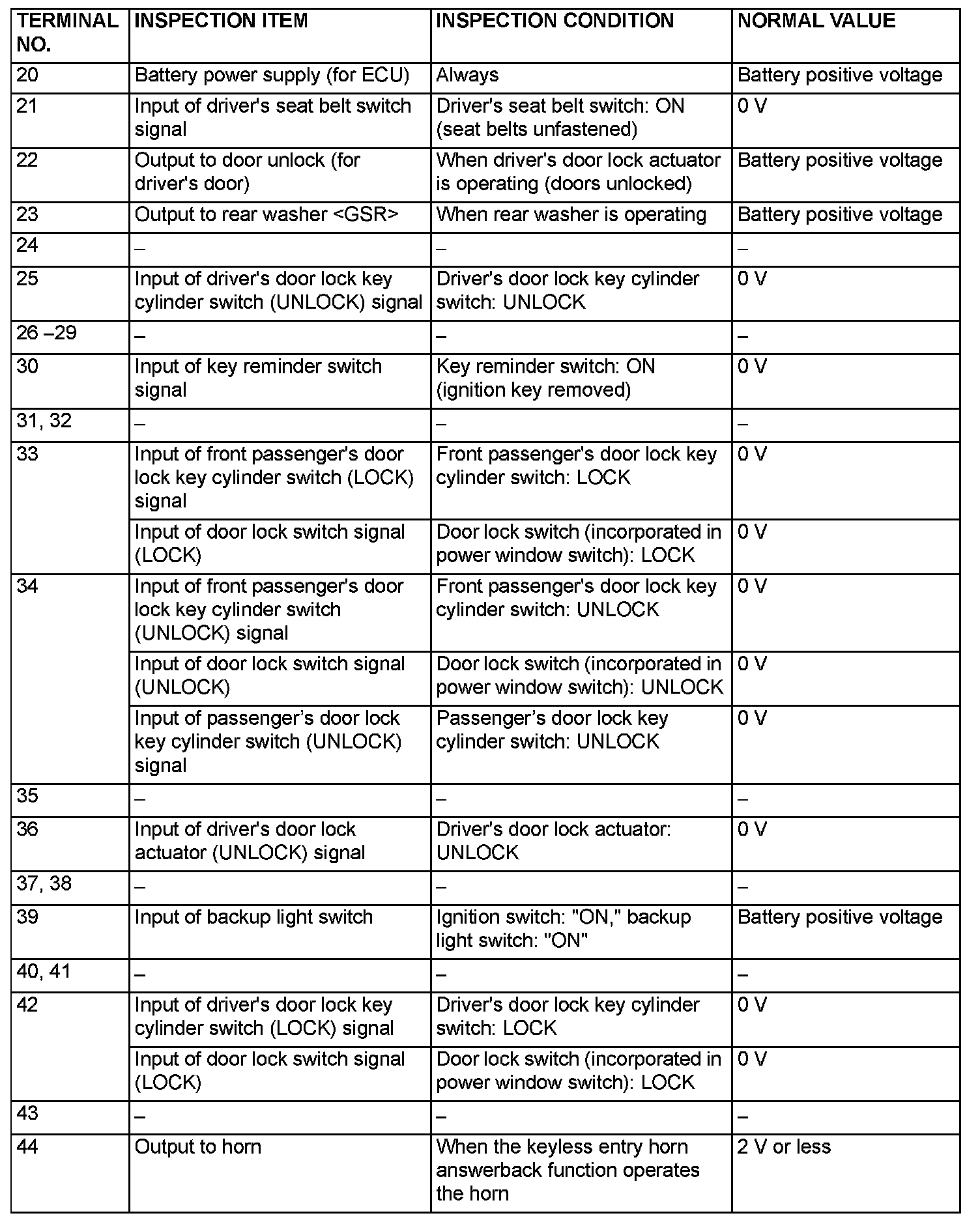 CHECK AT ECU TERMINALCheck At ECU Terminal - ETACS-ECU Part 1: