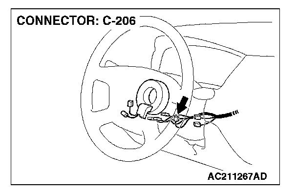 STEP 2. Check column switch connector C-206 for loose, corroded or damaged terminals, or terminals pushed back in the connector.