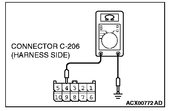STEP 6. Check the wiring harness between column switch connector C-206 (terminal 4) and the ground.