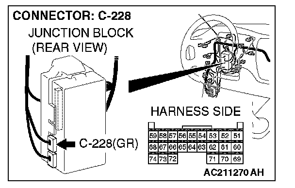 STEP 7. Check ETACS-ECU connector C-228 for loose, corroded or damaged terminals, or terminals pushed back in the connector.