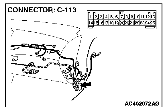 NOTE: Also check intermediate connectors C-113 and C-129 for loose, corroded, or damaged terminals, or terminals pushed back in the connector. If intermediate connectors C-113 or C-129 is damaged, repair or replace the damaged components) as described in Harness Connector Inspection.