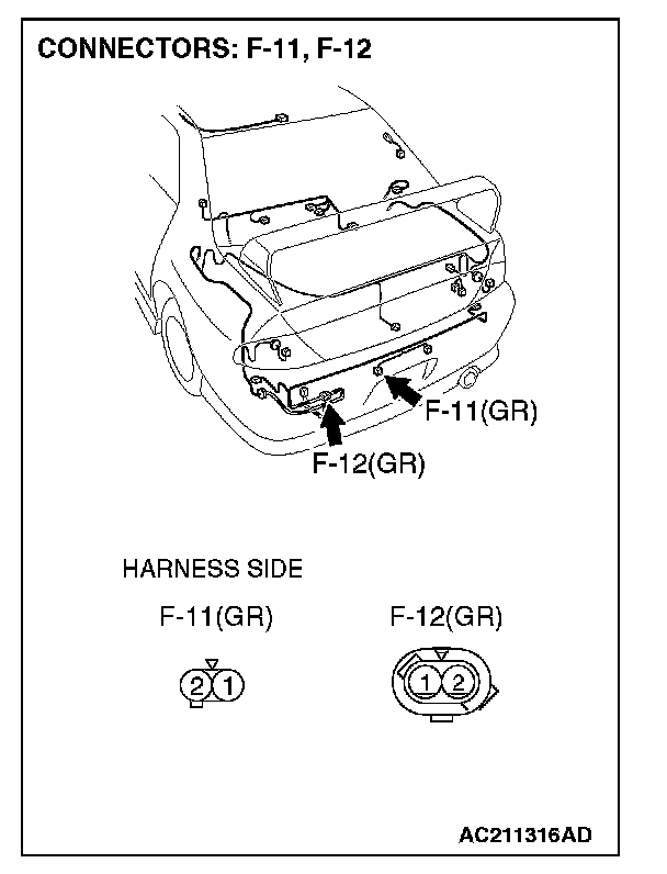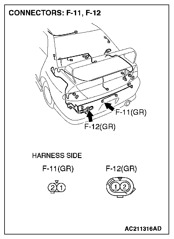 STEP 31. Check the wiring harness between license plate light (LH) connector F-11 (terminal 1) and intermediate connector F-12 (terminal 1).