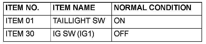 Q: Does the scan tool MB991958 display the items "TAILLIGHT SW", "IG SW (IG1)", "FRONT DOOR SW" and "H/L AUTO-CUT" as normal condition?