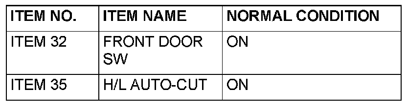 4. When the driver's door is opened, check that normal conditions are displayed for the items described in the table.