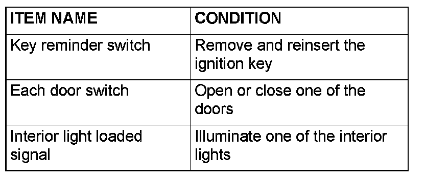 Q: When the key reminder switch, each door switch and the interior light are operated, does scan tool MB991958 sound in each case?