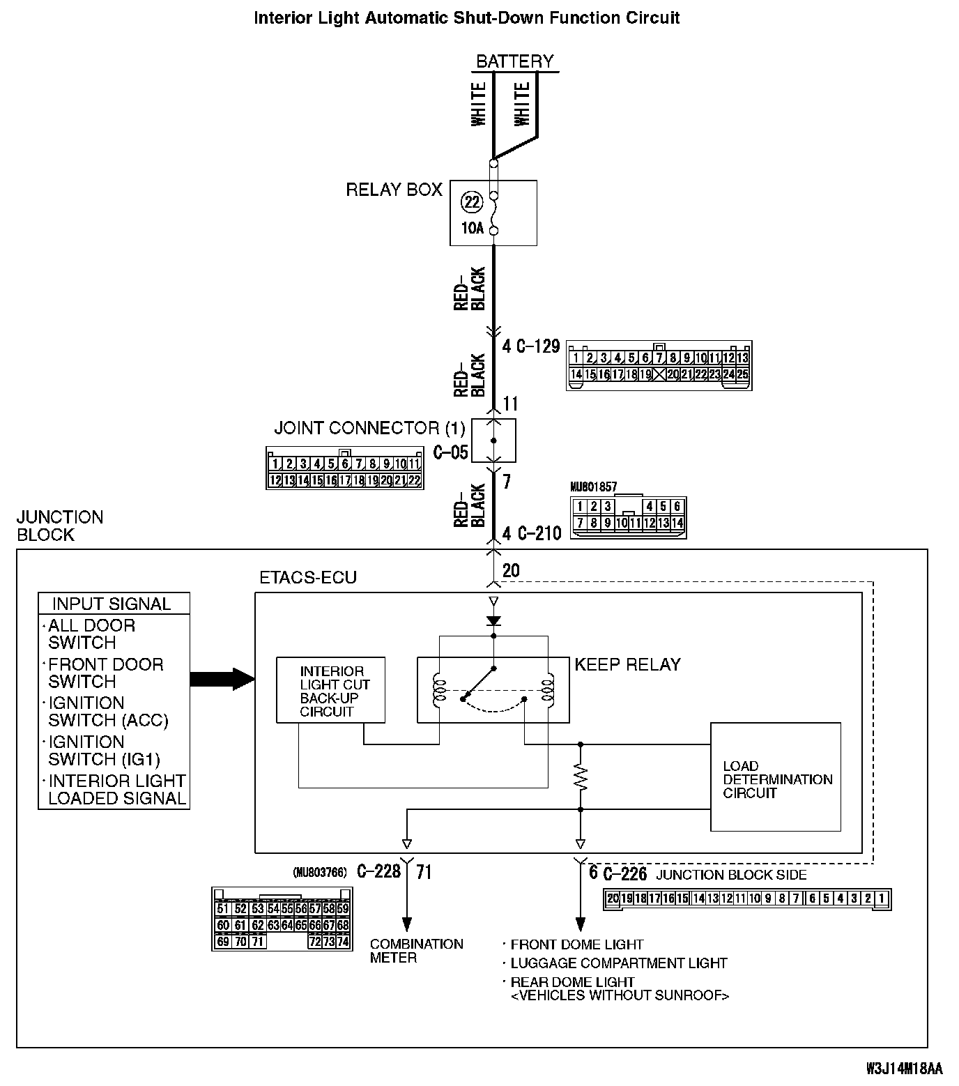 The ETACS-ECU operates the interior light automatic shutdown function according to the following switch signals:
