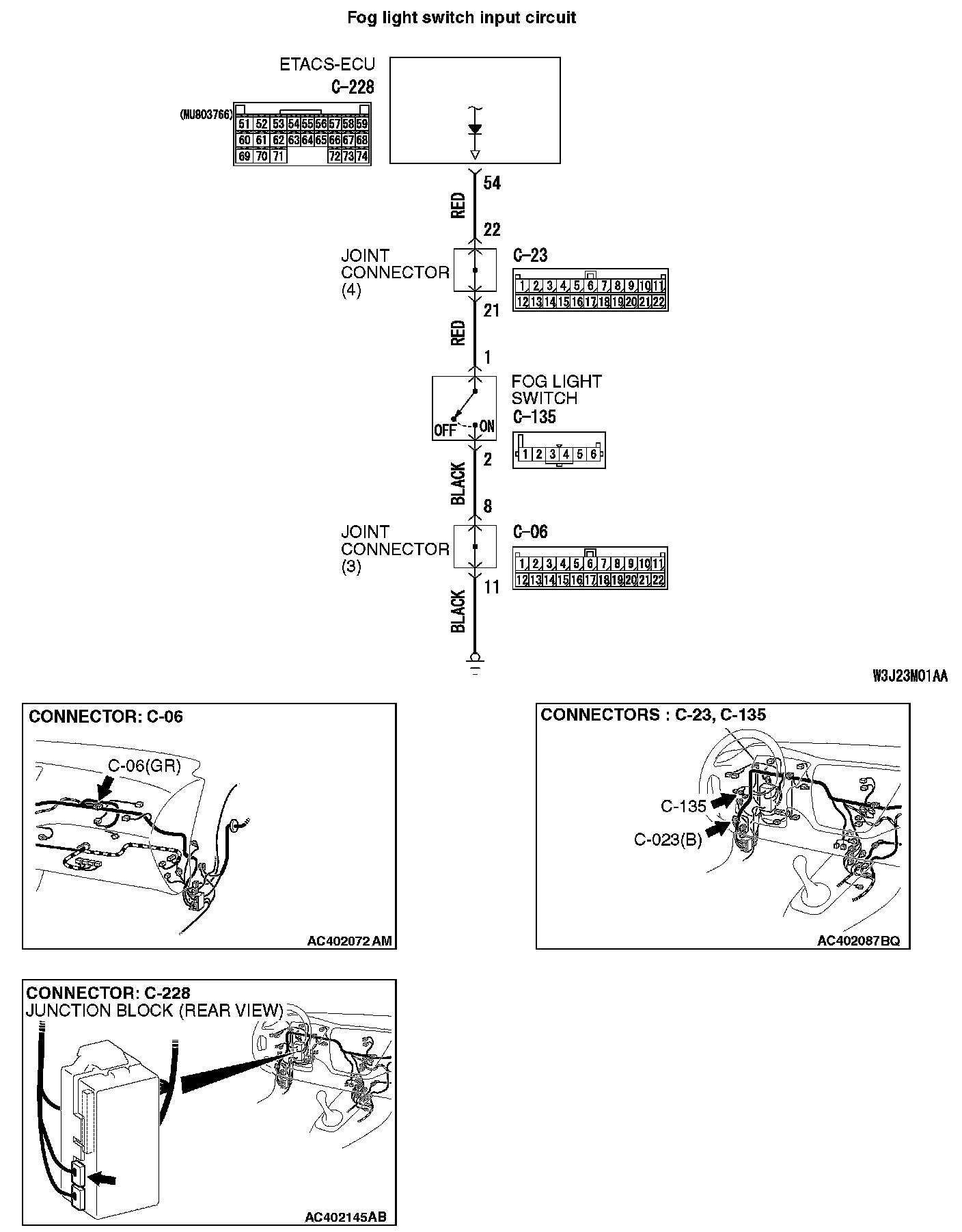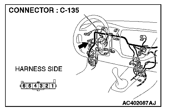 STEP 6. Check the wiring harness between fog light switch connector C-135 (terminal 1) and ETACS-ECU connector C-228 (terminal 54).