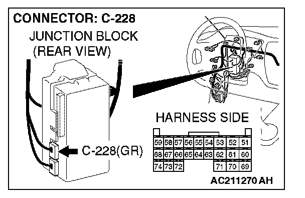 STEP 5. Check ETACS-ECU connector C-228 for loose, corroded or damaged terminals, or terminals pushed back in the connector.