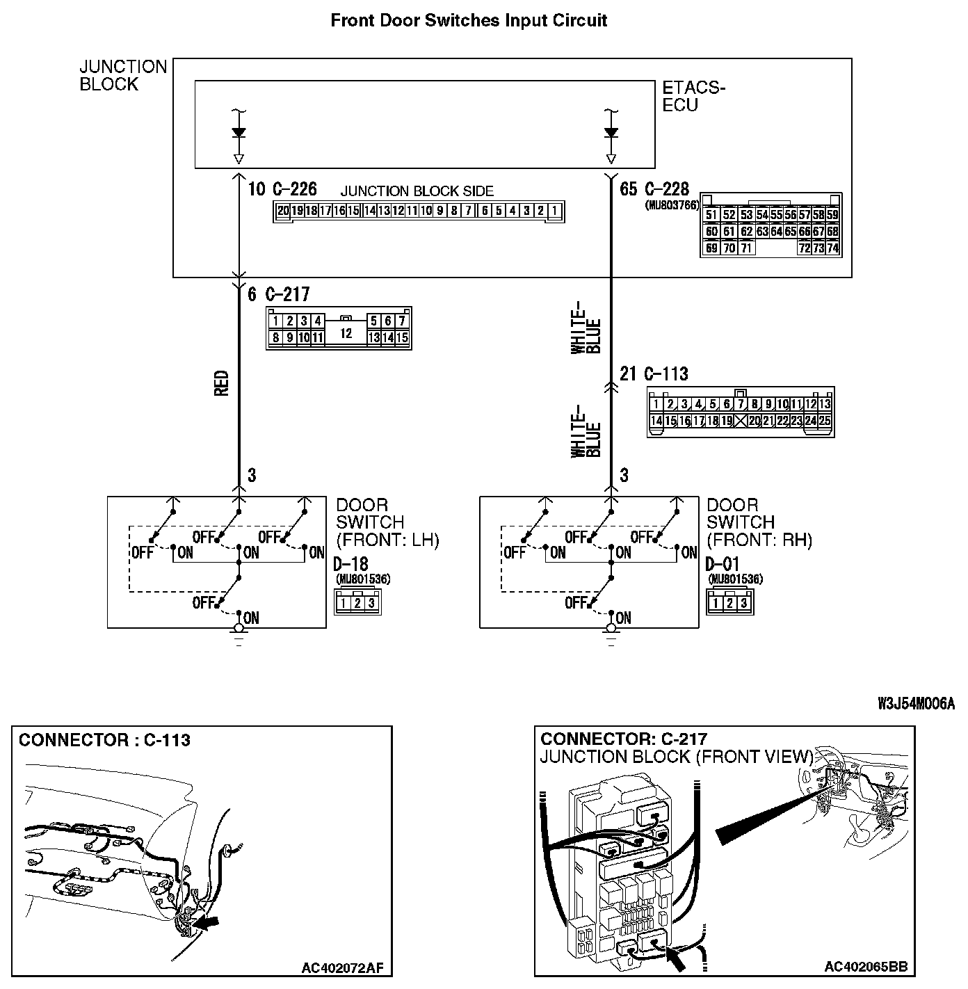 The ETACS-ECU does not receive any signals from the front door switches.Front Door Switches Input Circuit Part 1: