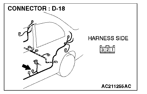 STEP 2. Check door switch (front: LH) connector D-18 for loose, corroded or damaged terminals, or terminals pushed back in the connector.