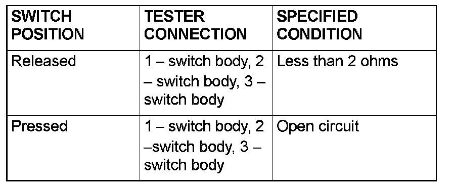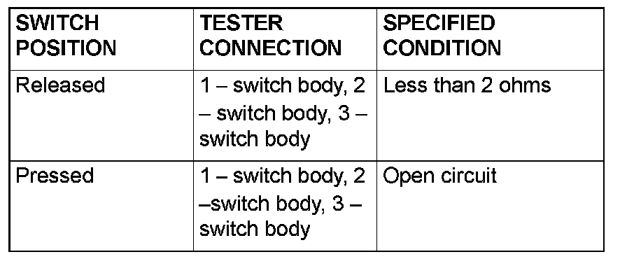 Remove the door switch (front: RH). Then check the continuity between the switch terminals.