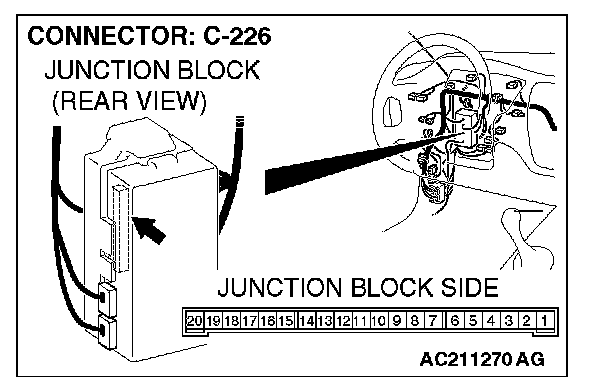 STEP 5. Check ETACS-ECU connector C-226 for loose, corroded or damaged terminals, or terminals pushed back in the connector.