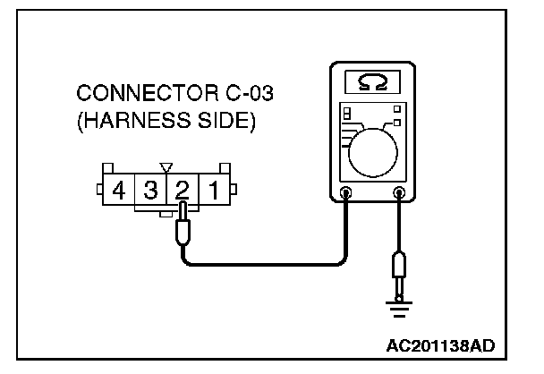 STEP 3. Check the ground circuit to the hazard warning light switch. Measure the resistance at hazard warning light switch connector C-03.