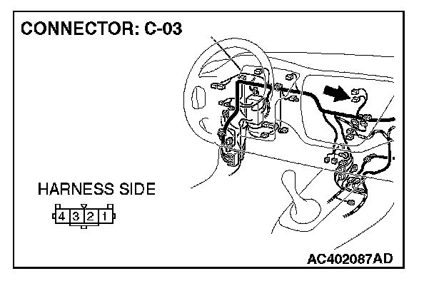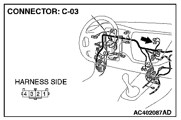 STEP 4. Check the wiring harness between hazard warning light switch connector C-03 (terminal 2) and ground.