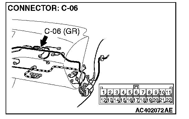 NOTE: Also check joint connector C-06 for loose, corroded, or damaged terminals, or terminals pushed back in the connector. If joint connector C-06 is damaged, repair or replace the damaged components) as described in Harness Connector Inspection.