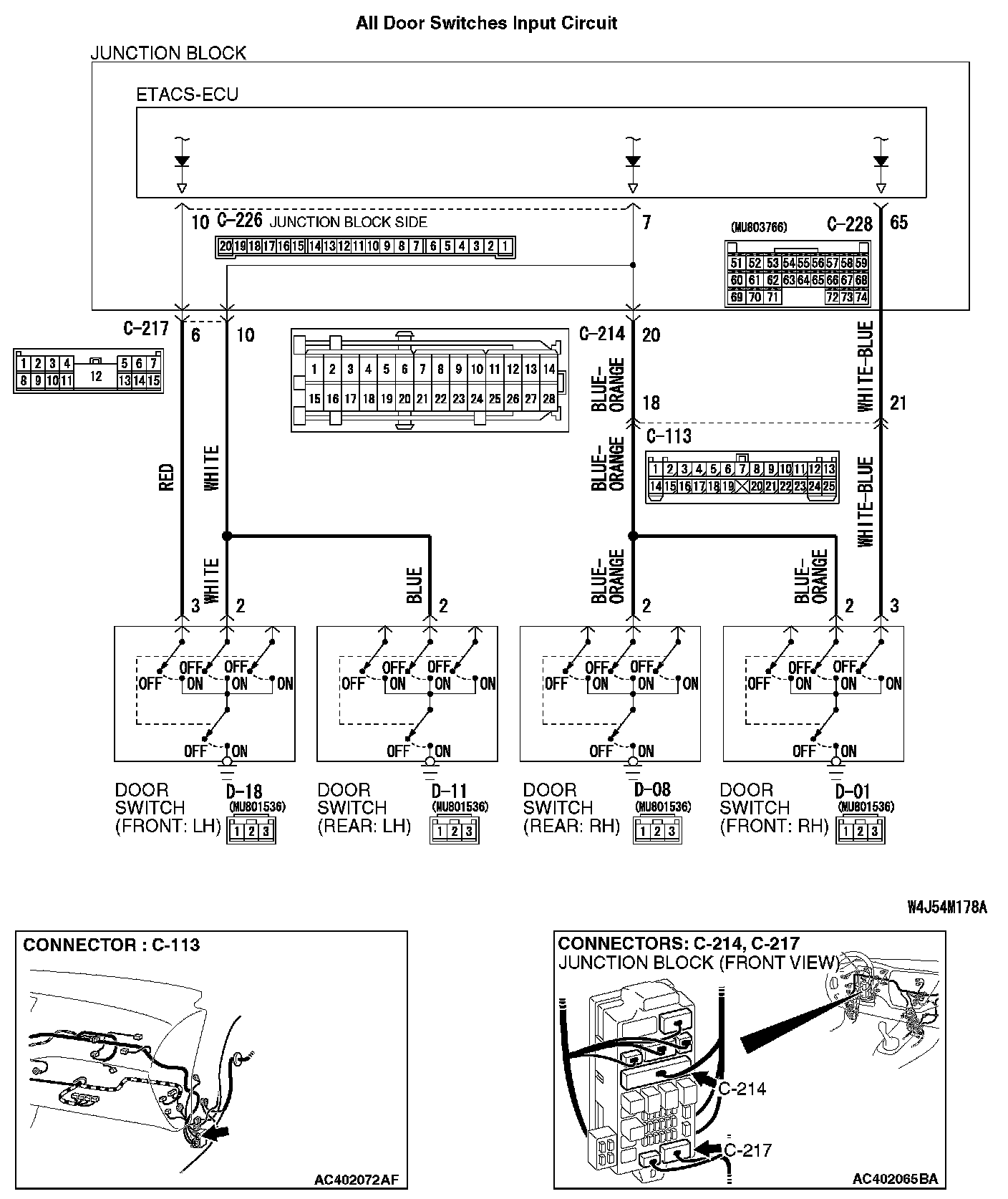 The ETACS-ECU does not receive any signal from all the door switches.All Door Switches Input Circuit Part 1: