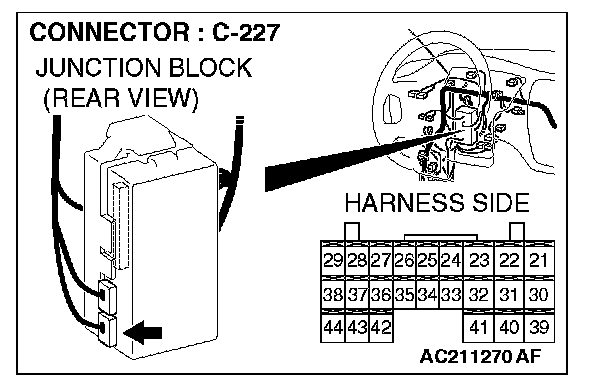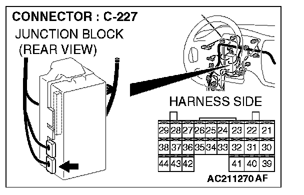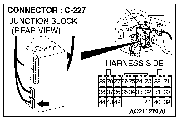 STEP 6. Check ETACS-ECU connector C-227 for loose, corroded or damaged terminals, or terminals pushed back in the connector.