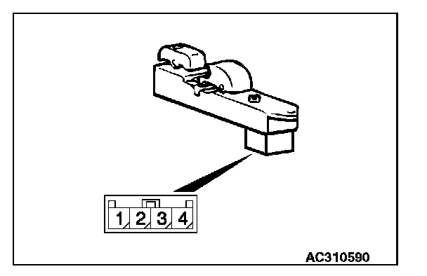 Remove the power window main switch. Then check continuity between the switch terminals.