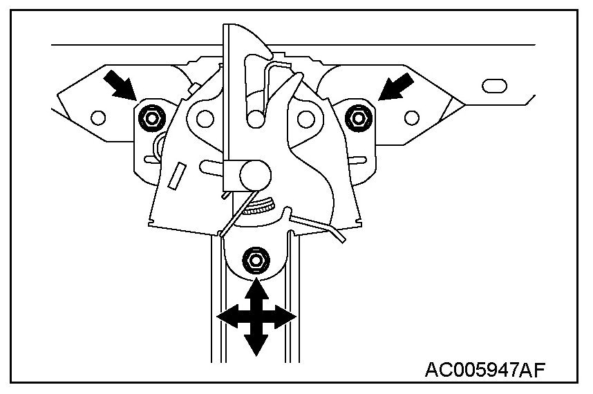Hood latch assembling bolt tightening torque: 9 ± 2 N.m (80 ± 17)in-lb