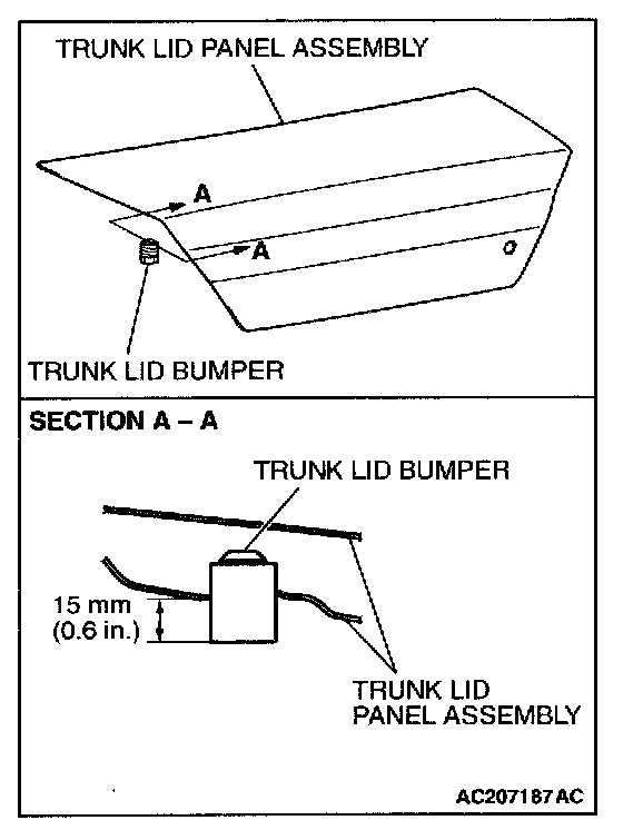 NOTE: When the bumper is new, one full turn of the trunk lid bumper changes the height approximately 3 mm. Turn it clockwise to reduce height. Turn it counterclockwise to increase height.