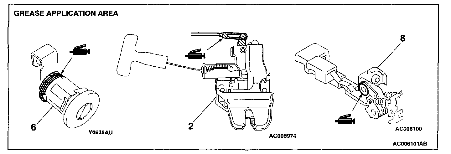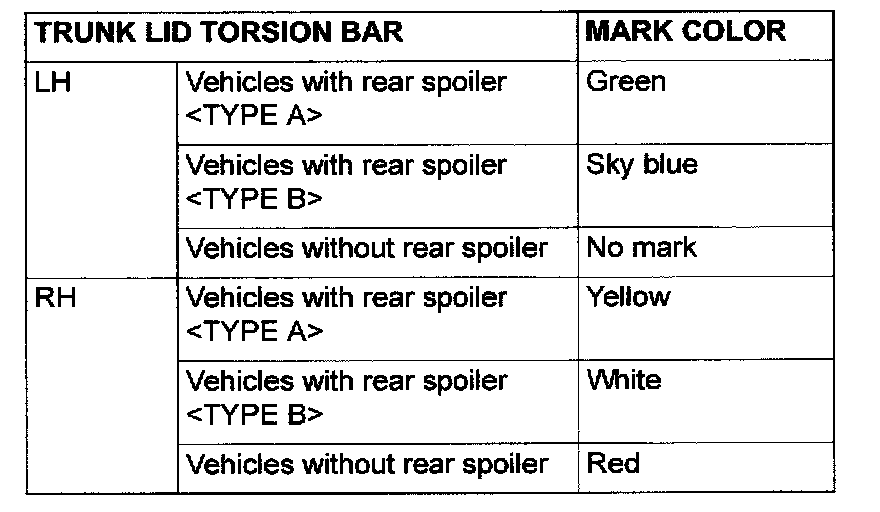 CAUTION: Install the trunk lid torsion bar [RH] before the trunk lid torsion bar [LH]. If the sequence is reversed, the trunk lid torsion bar [RH] will not be able to be installed because the special tool will interfere with the trunk lid torsion bar [LH] during installation of the trunk lid torsion bar [RH].