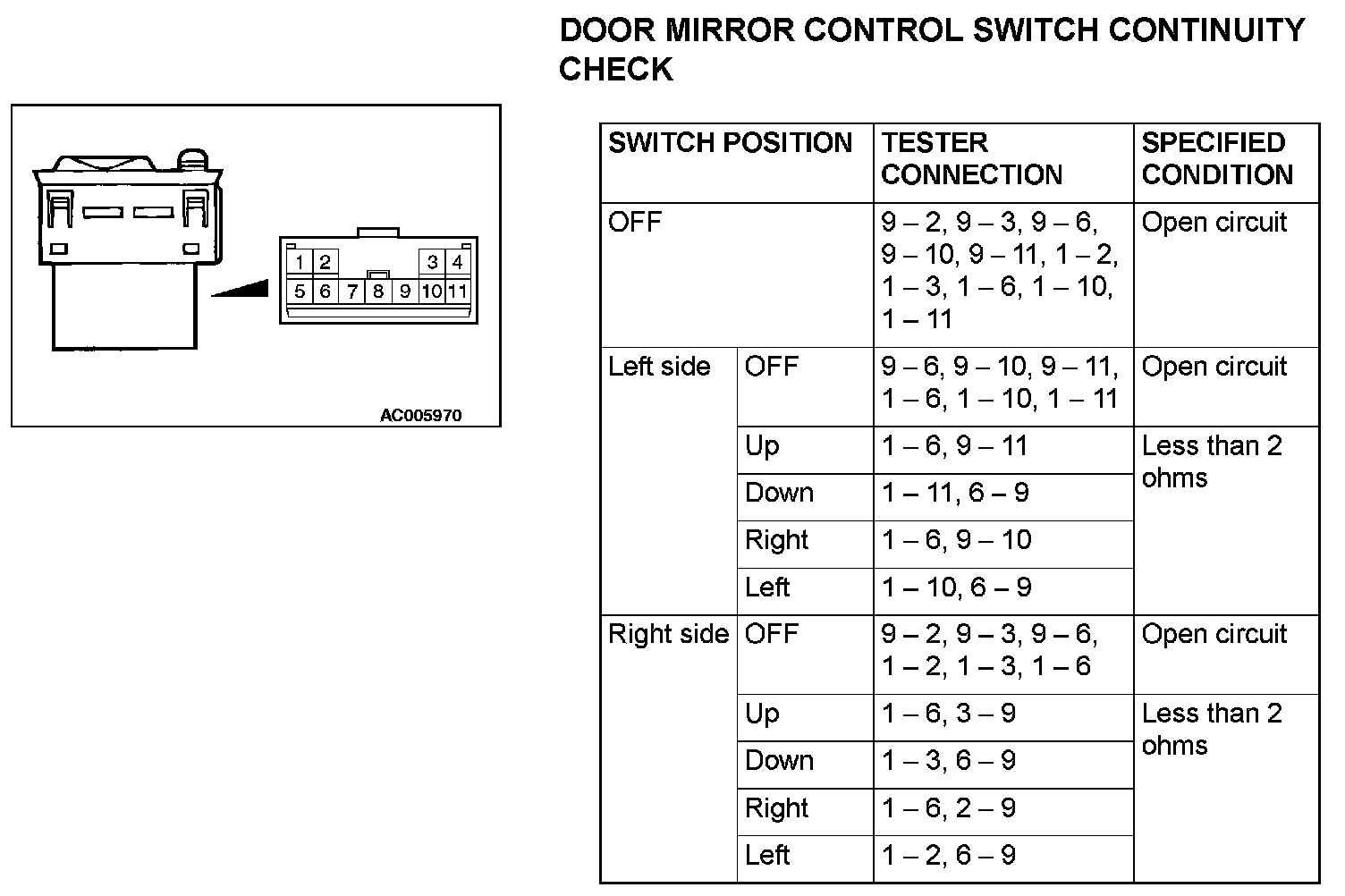 DOOR MIRROR CONTROL SWITCH CONTINUITY CHECK