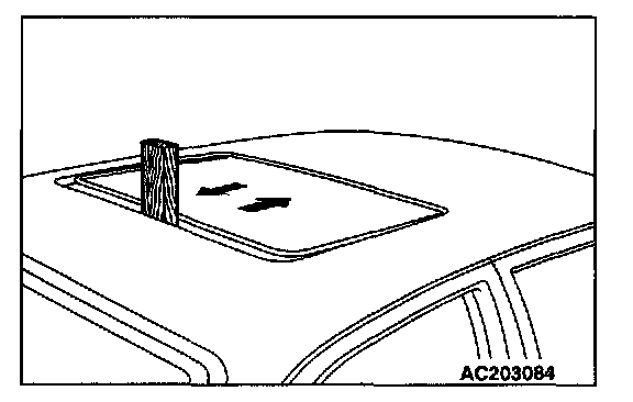 SUNROOF SAFETY FUNCTION CHECK1. Close the roof lid glass by applying an approximately 10 mm (0.39 inch) thickness wood chip placed in a right angle with the roof lid glass.