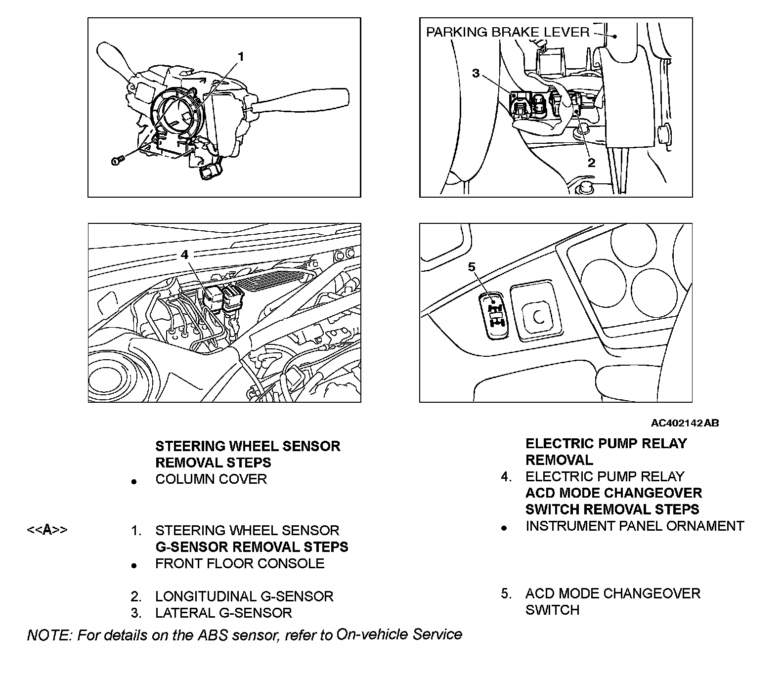 NOTE: For details on the ABS sensor, please refer to Wheel Speed Sensor ABS Sensor Output Voltage Measurement at ABS-ECU