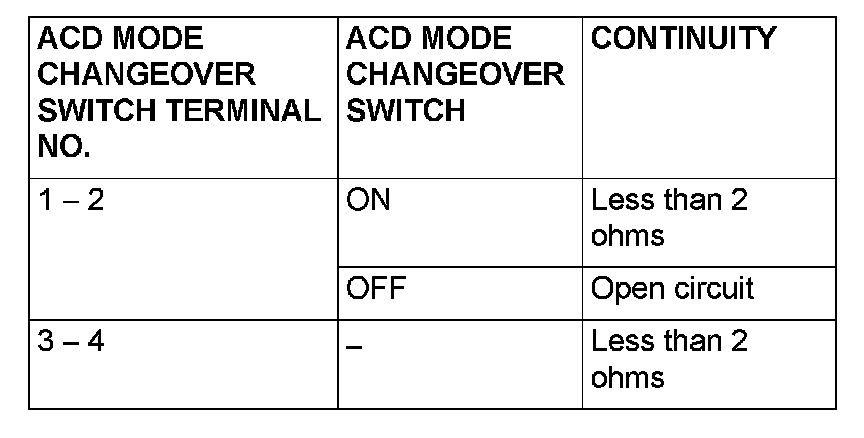 ACD MODE CHANGEOVER SWITCH CONTINUITY CHECK