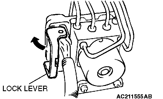 1. Move the lock lever of the ABS-ECU connector as shown in the illustration, and then disconnect the ABS-ECU as connector.