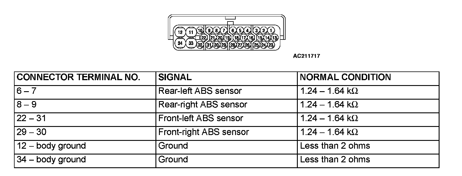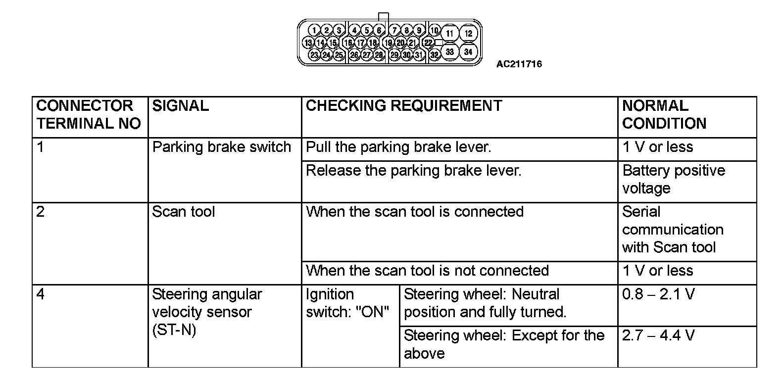 1. Measure the voltages between terminals (12) (ground terminal) and each respective terminal.