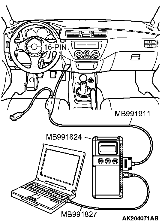 CAUTION: To prevent damage to scan tool MB991958, always turn the ignition switch to the LOCK (OFF) position before connecting or disconnecting scan tool MB991958.
