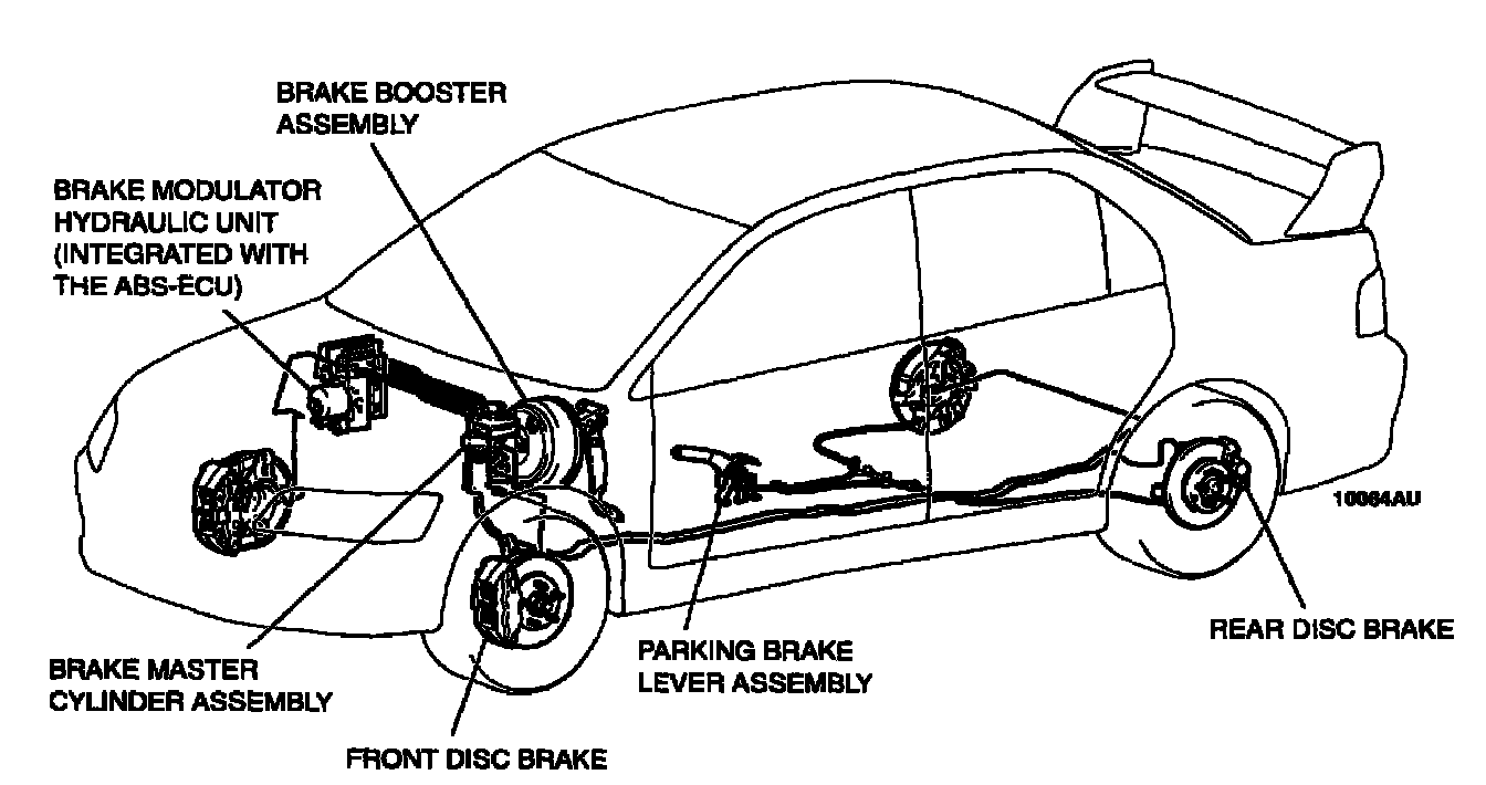 3. Front- and rear-wheel X-type brake line layout is used.