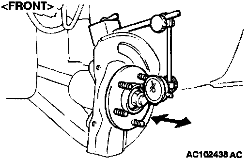 2. Remove the brake disc Then place a dial gauge as shown, and measure the end play by pushing and pulling the wheel hub