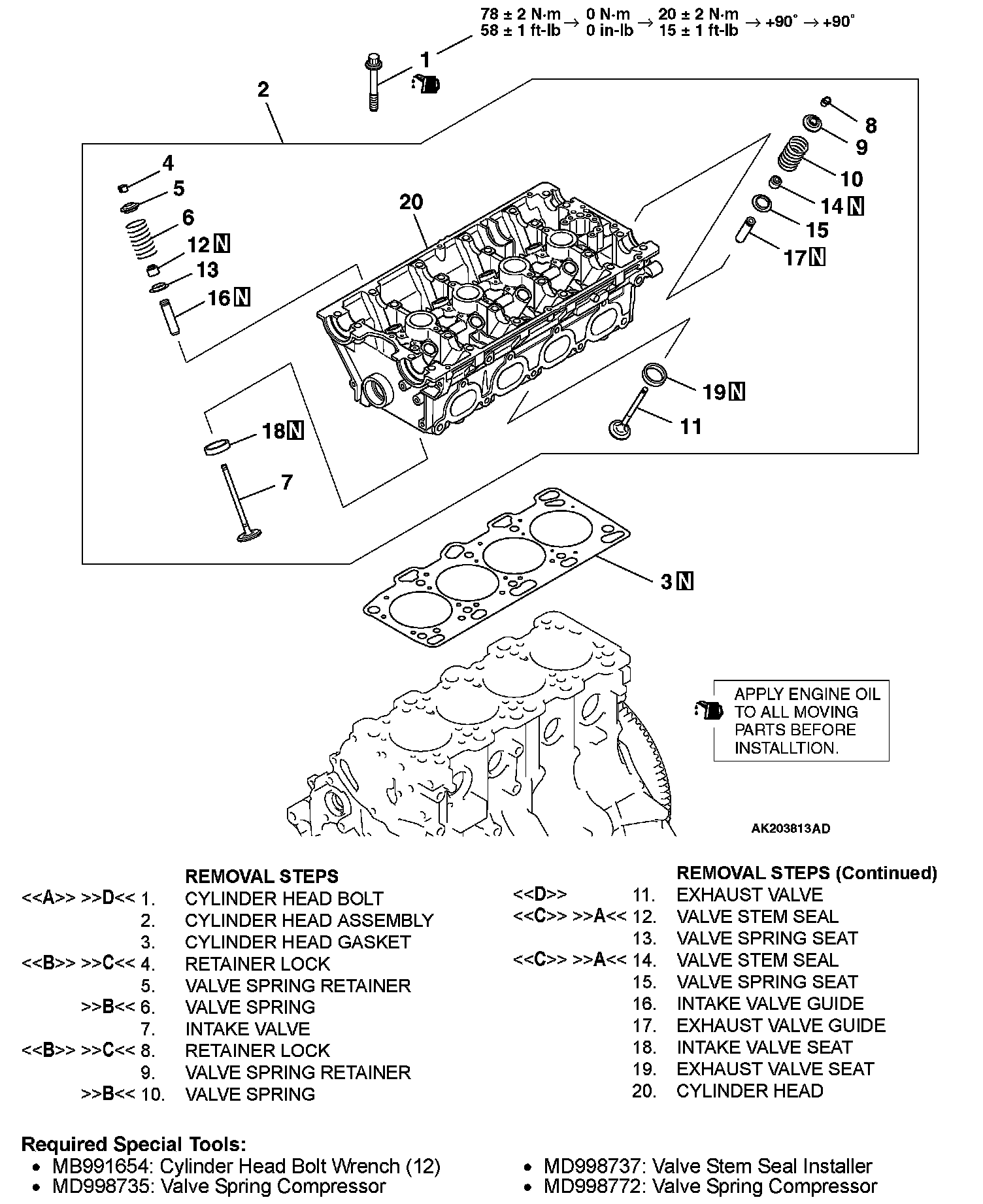 Removal Steps 1-20 & Required Special Tools: