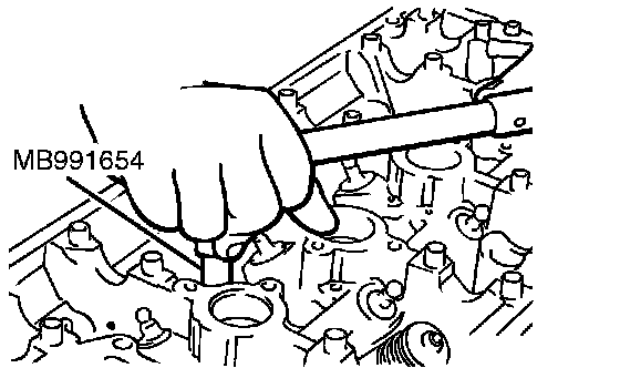 1. Using a press, push the valve guide out toward the cylinder block side.