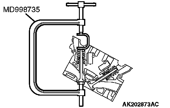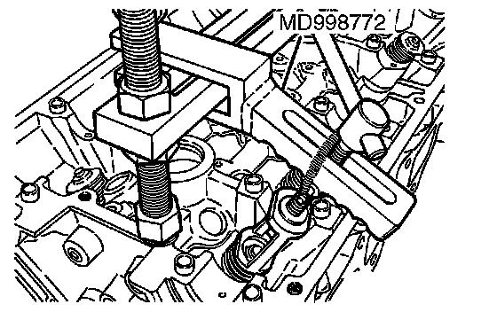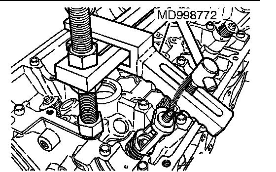 1. Using special tool MD998735 or MD998772, compress the retainer locks.
